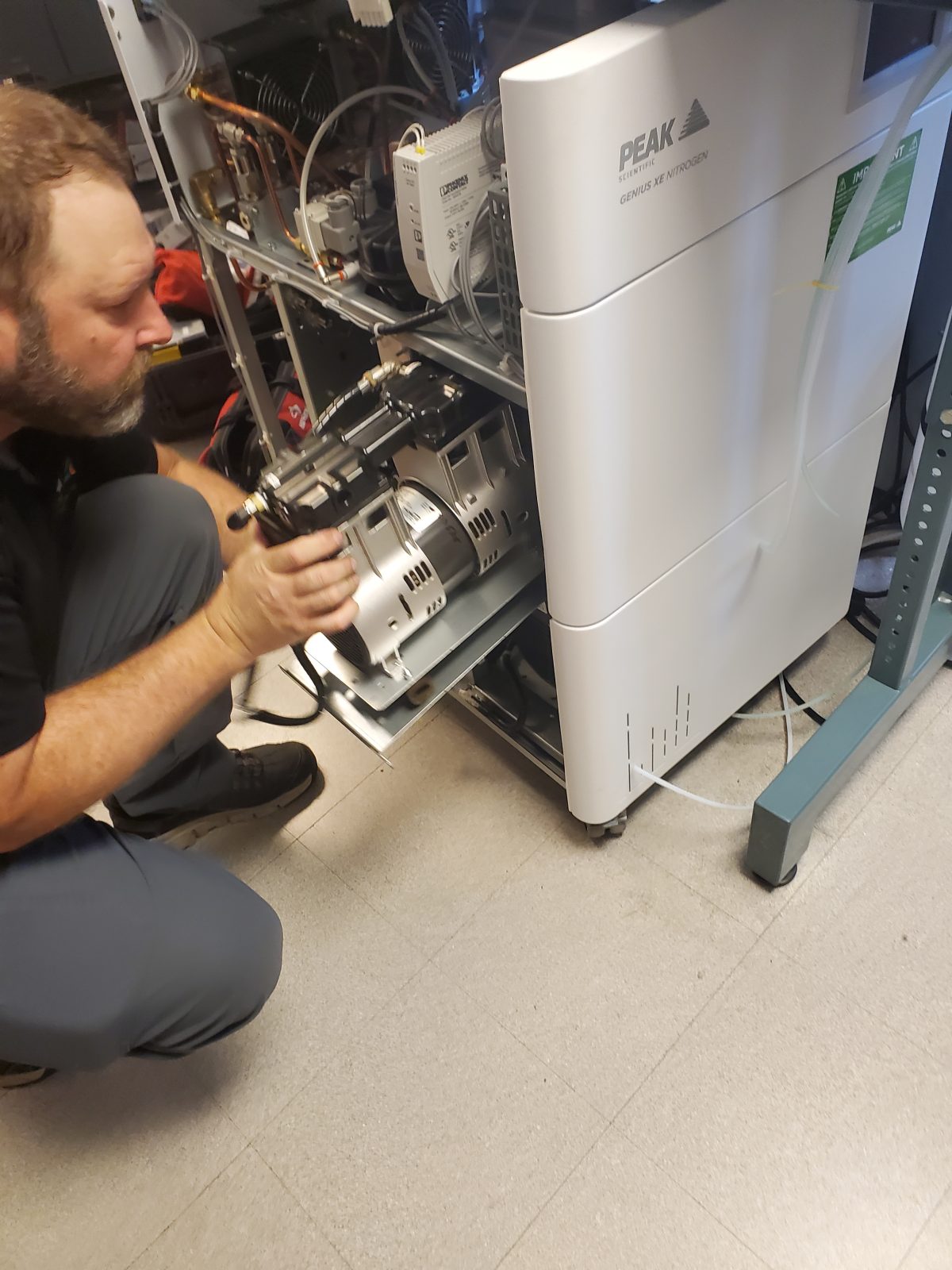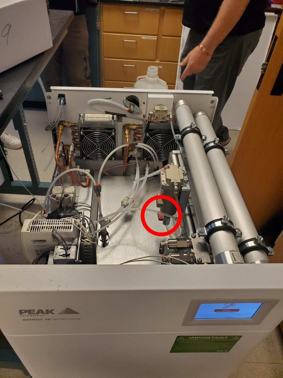 This page describes what we witnessed as our Peak Scientific Genius XE70 Nitrogen Generator was receiving its first annual maintenance on May 20, 2025. Here is a copy of Becky's original Word document created shortly after the May 20th maintenance. All original photos can be found here. Pics of Ursula's notes taken in the notebook are here.