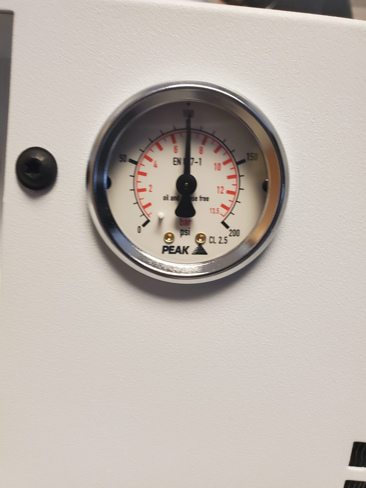 Test before putting panels back on. Plug in. Reconnect drain hose. Turn on..Set to 100 psi (analogue) should read 70-80 on digital red number.
